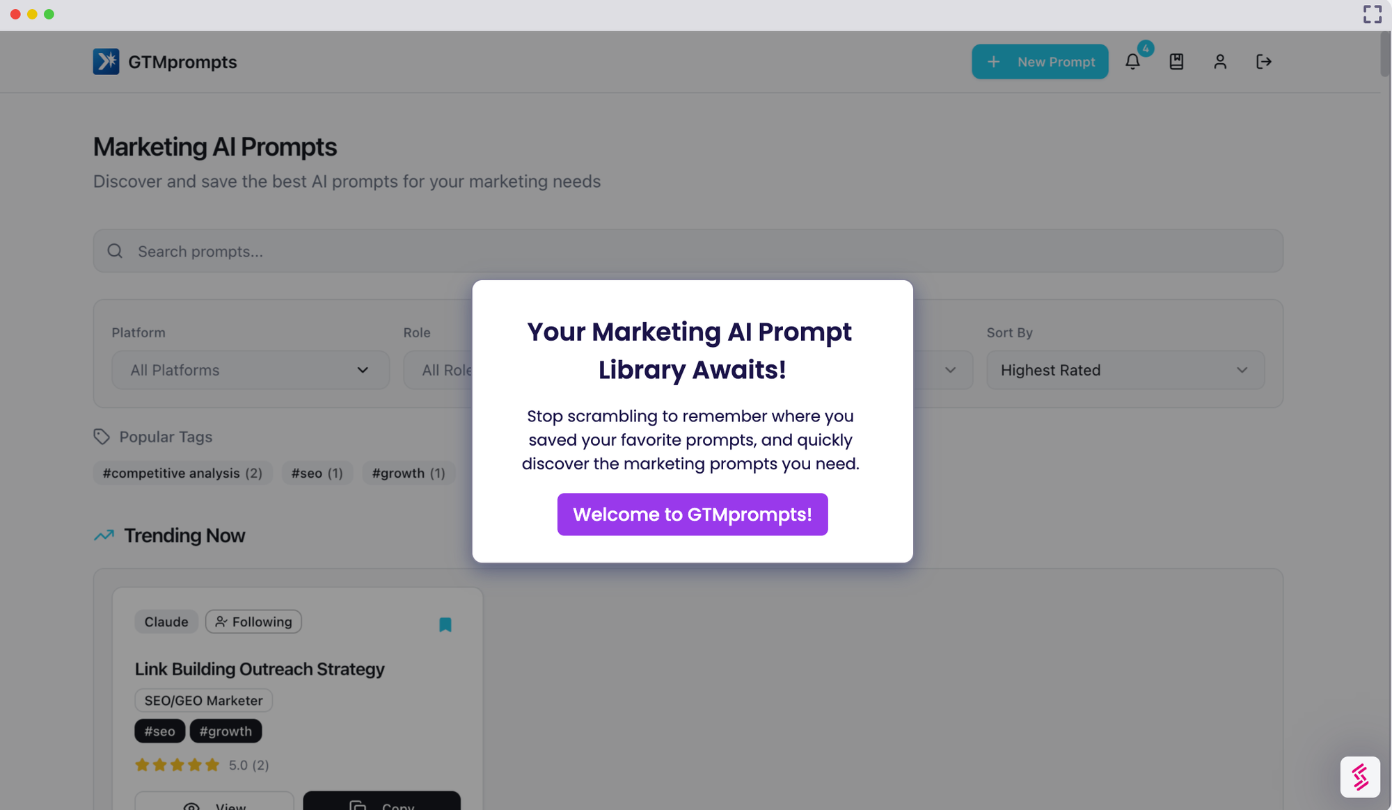 GTMprompts, a "personal AI prompt library for marketers." Currently in private beta (please add your name to the list if interested - I'll send out invite emails shortly), and if the feedback is positive, something I just might release it publicly in the coming weeks.